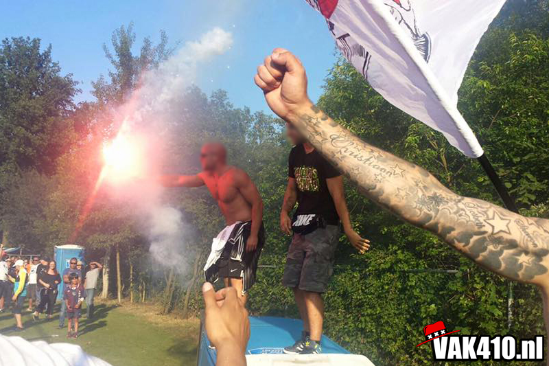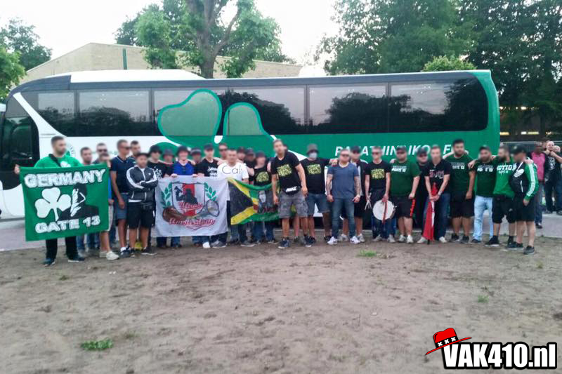 Na een middagje vol versnaperingen in Apeldoorn zetten we koers richting Epe waar de rest op ons wacht. Er wordt verzameld naast de spelersbussen van beide clubs. De Grieken zijn ditmaal aanwezig met een grotere groep dan tijdens de Copa Amsterdam vorig jaar.