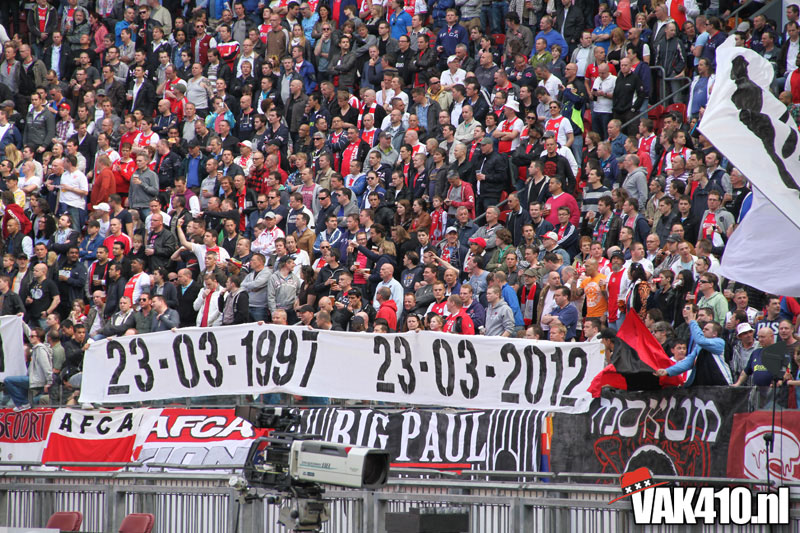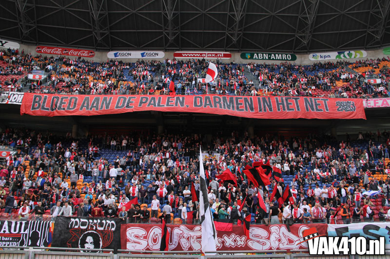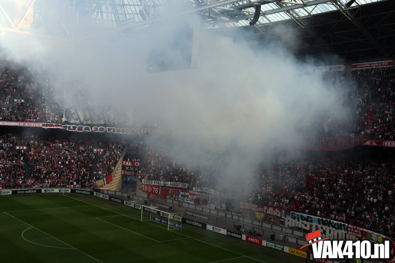 De magie van het doek werd overgebracht naar het veld en de Amsterdamse Zuid tribune. De Mokumse leeuw kwam in een ieder naar boven. De tribunes klokte, het stadion was 1. Er kon op de tribune en het veld dan ook niet meer verloren worden.