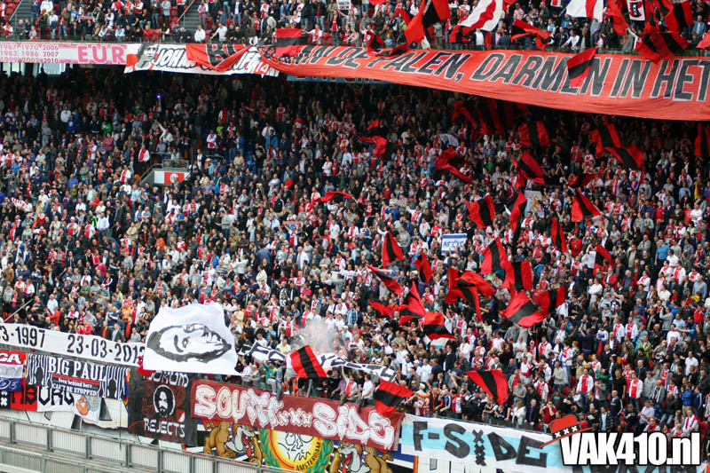 Temeer de tegenstander, geen tegenstander was. Het uitvak was voor deze topper niet uitverkocht. PSV wilde slechts 1.200 kaarten afnemen uit respect naar Ajax omdat zij slechts 1.200 man kunnen meenemen. En dan hebben we het nog niet eens over de Eindhovense stewards die er zorg voor moeten dragen dat het megadoek wel goed over de koppies gaat. Nee, dan win je het niet in Amsterdam...