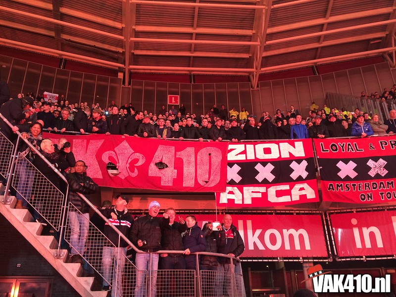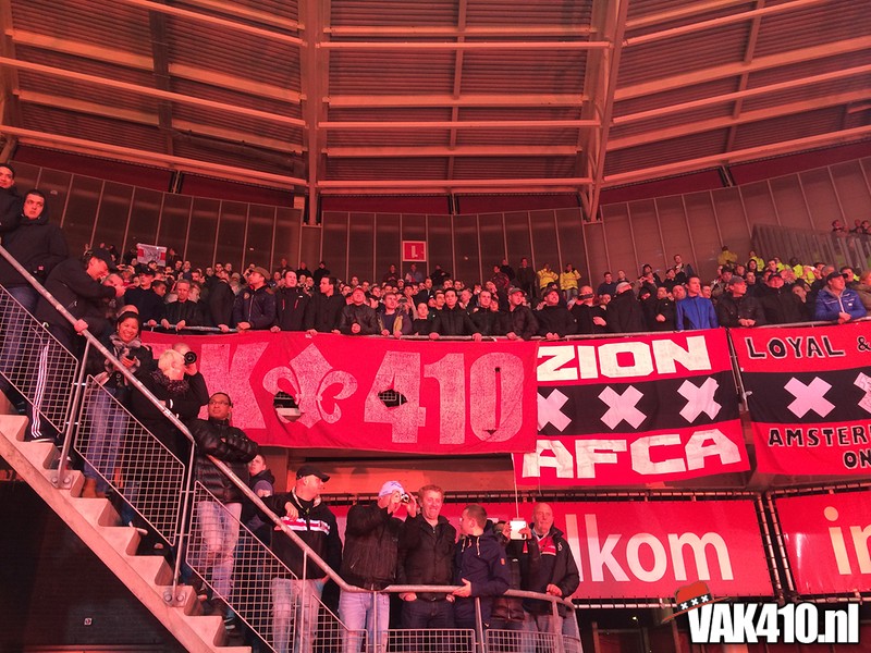 Het was een spannende voetbalavond, 2 rode kaarten, een gestopte penalty, een uitblinkende Vermeer en een schitterende vrije trap die ons de doortocht naar de Kuip bezorgde. Het uitvak overstemde 90 minuten lang de klappers van AZ. Na afloop van de wedstrijd werd de overwinning gevierd met de spelers zoals het hoort. De supporters op het hek en de shirts niet uitgewisseld met de tegenstanders, maar weggegeven aan de immer trouwe Ajacieden.