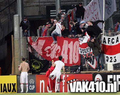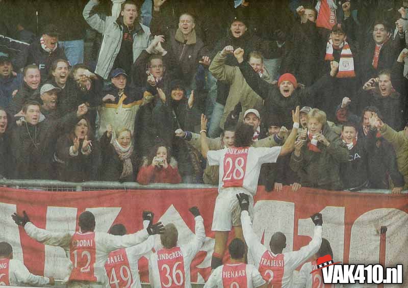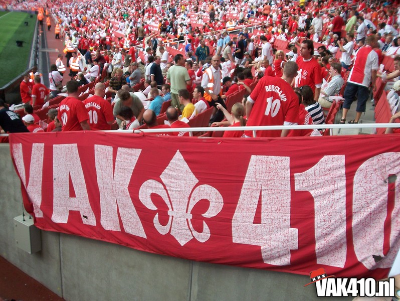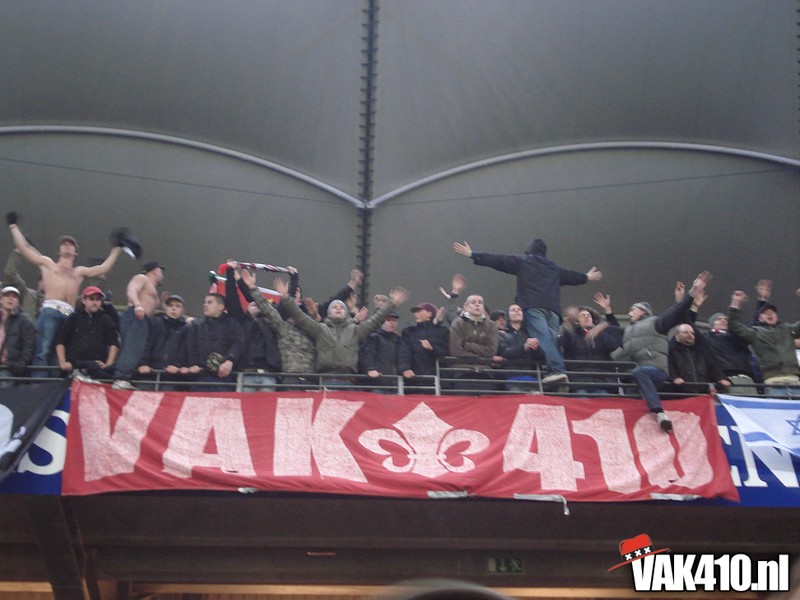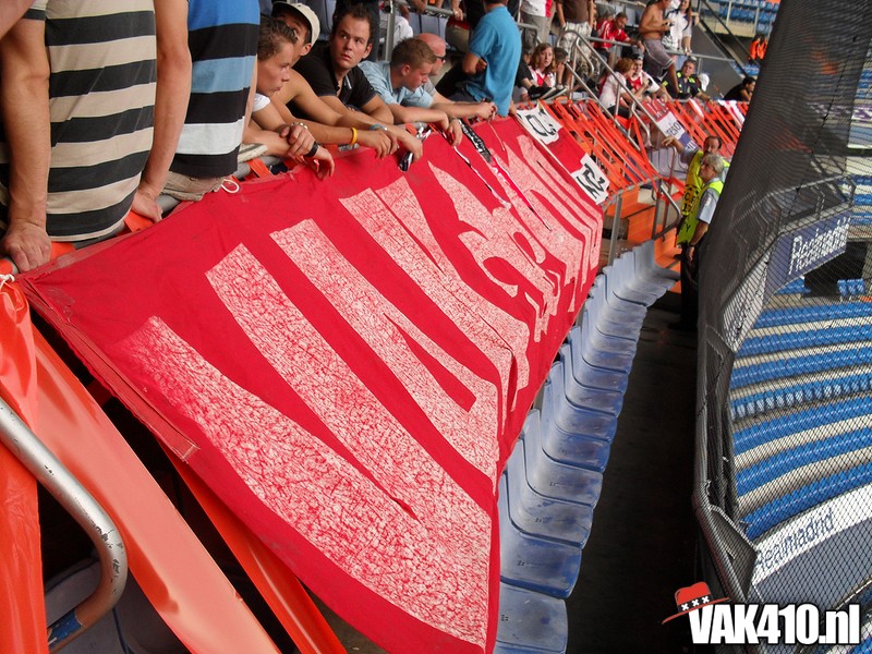 Op 29 mei 2003 was het huidige groepsdoek voor het eerst te zien op VAK410. Destijds nog niet het groepsdoek maar vanaf dat moment gewoon één van de vaste spandoeken op het vak. Vanaf het seizoen 2004-2005 werd het huidige doek het vaste gezicht met uitwedstrijden. Van Groningen tot Kerkrade, van Enschede tot aan Rotterdam. Maar natuurlijk ook in Europees verband bijvoorbeeld in Moskou, Tel Aviv, Kopenhagen, Manchester, Auxerre en Turijn. Door weer en wind, in voor- en tegenspoed. Altijd met ons mee, maar vanaf nu met pensioen.