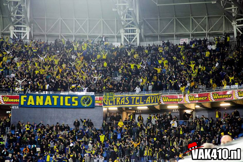 Maccabi Haifa heeft sinds kort een mooi nieuw stadion met tribunes die dicht op het veld zitten. Het uitvak is gevuld met zo'n 2500 man. Haifa opent met een choreo actie en in het uitvak is er dit maal geen tifo actie te zien. Het thuispubliek laat zich goed horen evenals het uitvak, met sommige melodieën kan je wel meedoen maar verder is er aan de taal geen touw aan vast te knopen. De melodieën daarin tegen zijn wel een genot om naar te luisteren. De Amsterdamse vlag laten we verschillende keren zien en Ajax joden super joden klinkt ook even.