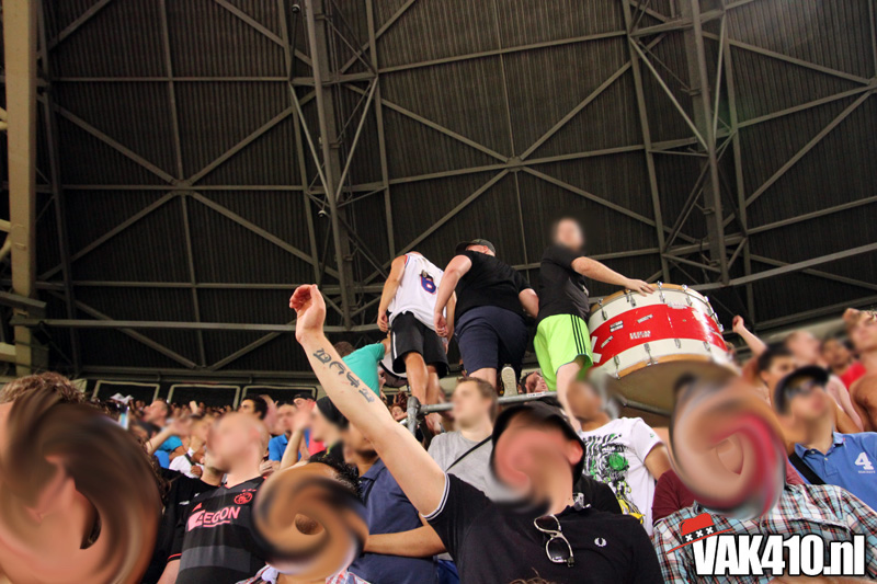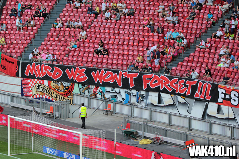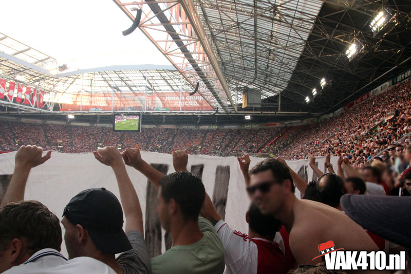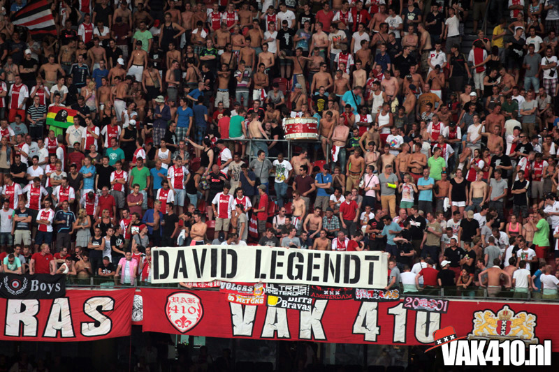 De competitie is weer begonnen, Ajax zet vol in op het record van 4 titels op rij! Dit maal hopelijk resulterend in een huldiging op de plek waar het hoort; de Amsterdamse binnenstad. Ondanks het feit dat de wedstrijd op een vrijdag plaatsvindt staat het grasveldje bij het honk al vroeg vol. Onder het genot van een lekker zonnetje gaan de koude en lauwe biertjes er goed in. Even bijkletsen, zo goed als iedereen is er weer. Over voetbal praten heeft verder weinig zin, zelfs na 5 wedstrijden spelen is het nog steeds mogelijk dat Ajax ineens zijn topspelers verliest. Transferperikelen, het heeft geen zin om je er druk over te maken! De enige dag roept een speler "ik blijf" en de volgende dag komt er "een mooie club met een uitdaging die ik niet kon laten schieten" Wij zullen echter altijd blijven gaan naar onze liefde, ultras everyday! In het stadion worden de supporters van Stuttgart gefeliciteerd met hun overwinning. Na een jarenlange strijd heeft de club eindelijk haar oude logo terug. Traditie is terug in Stuttgart, nu nog in Amsterdam! Ajax wint de wedstrijd overigens zonder bijzonder goed te voetballen vrij eenvoudig met 3-0.