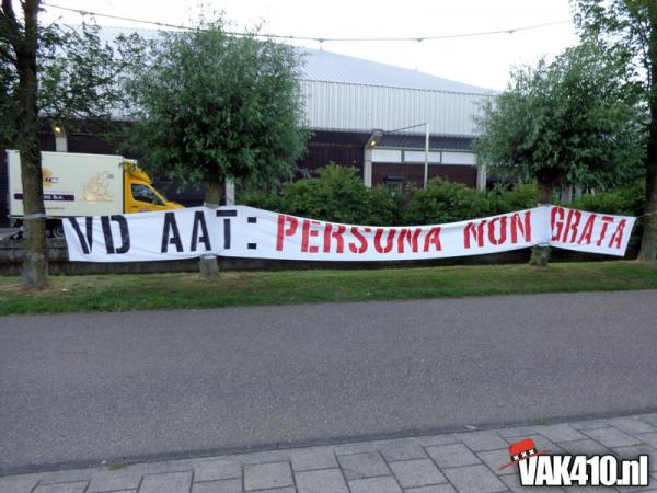 Afgelopen vrijdag zijn er voor de wedstrijd Jong Ajax - Jong FC Twente spandoeken opgehangen door VAK410 en vele andere supportersgroeperingen waarin het ongenoegen werd geuit over de voordracht voor lidmaatschap van Van der Aat.
