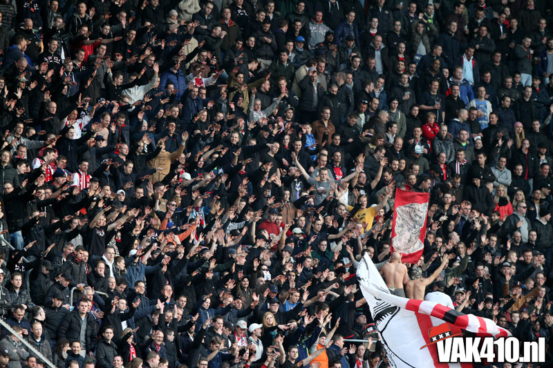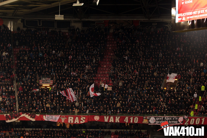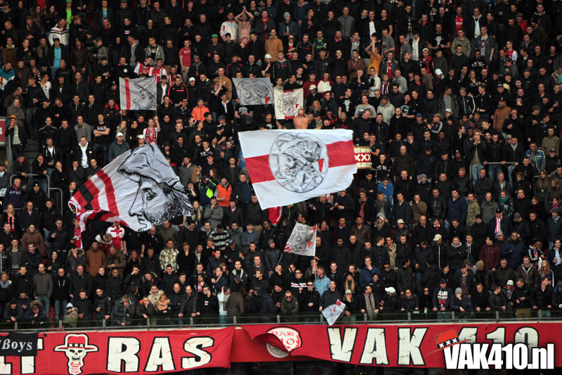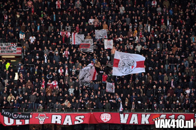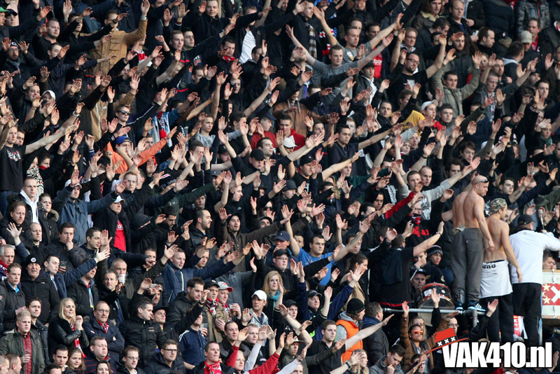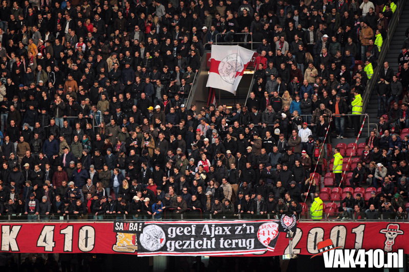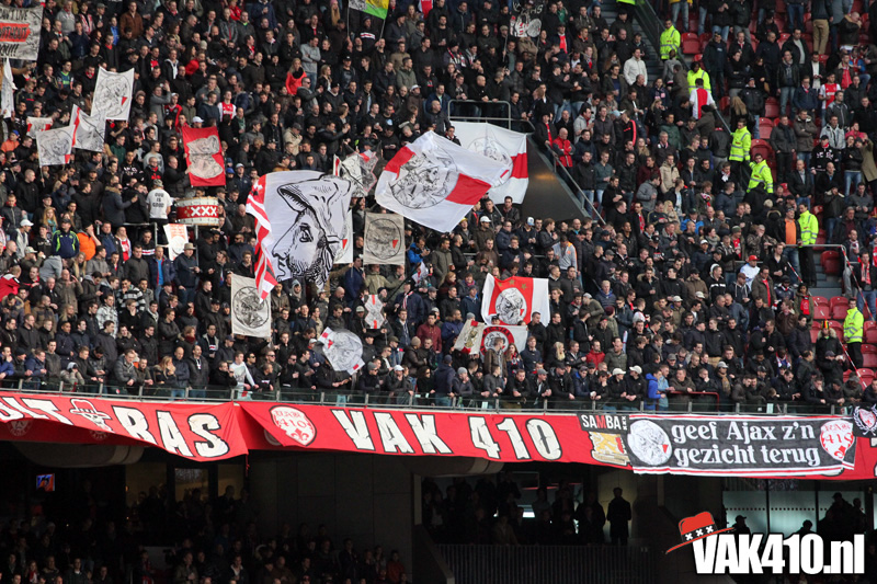 Maar zo makkelijk laten wij ons niet uit het veld slaan. Gewoon zorgen dat de flyers netjes mee naar binnen gaan en niet op de grond belanden. Wij brachten de actie onder de aandacht van duizenden Ajacieden die vroeg naar de Arena waren gekomen.