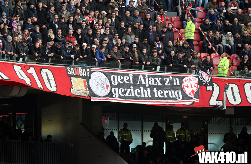 In de week voorafgaand werd bekend wat sommigen al wisten. Na maanden van voorbereiding werd de actie “Geef Ajax z’n gezicht terug!” nieuw leven in geblazen. Een werkgroep met vertegenwoordigers uit alle supportersgroepen van Ajax heeft de handen ineengeslagen en samen gaan we weer vol voor waar we al jaren naar verlangen!